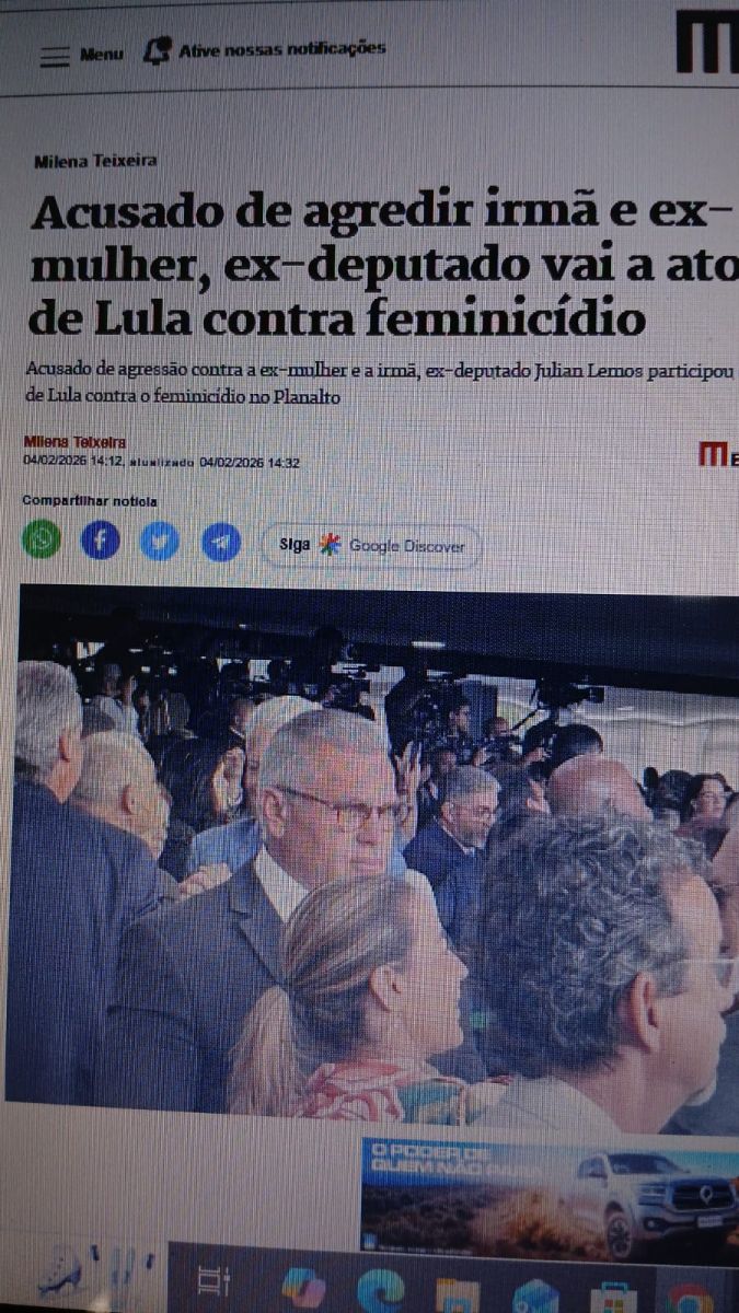 Acusado de agressão contra a irmã e a ex-esposa, o ex-deputado federal Julian Lemos participou, na manhã da última quarta-feira (4/2), de um ato do presidente Lula contra o feminicídio. O evento foi realizado no Palácio do Planalto.