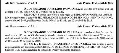 O Diário Oficial do Estado, edição desse sábado, 18, trouxe novidades nos atos do governador Lucas Ribeiro, tornando ato sem efeito e nomeando novos auxiliares.