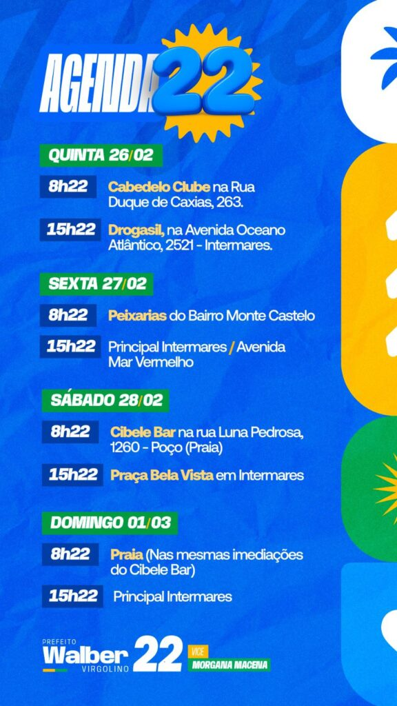 Veja abaixo as agendas de Walber Virgolino em Cabedelo: